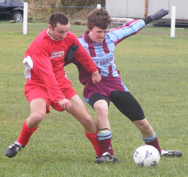 (15/12/07) 3-1 down with little more than fifteen minutes remaining it looked all over for Glantraeth Under 17s at Felinheli this morning only for a dramatic late turnaround that saw them score three times to run out 4-3 winners. They could have hardly started in worse fashion as a weak clearance led to the home side taking the lead after just 23 seconds. Glan levelled on 27 minutes through a tremendous volley from Ben Hull (pictured left). Two goals in a minute midway through the second period seemed to have settled the game in Felinheli�s favour but they reckoned without the battling qualities of Glantraeth. The fightback started on 74 minutes as a superb through ball from Jamie Ashton gave Matti Jones a clear run on goal and although his first effort came back off a post he was able to finish at the second attempt. A minute later Felinheli half cleared a Ben Hull free kick and Sean Davies swooped to smash a low shot through a crowd of players and past the keeper. With three minutes remaining there were jubilant scenes as Scott Hughes struck from close range to score the winner and give Glan the double over the Gwynedd side.