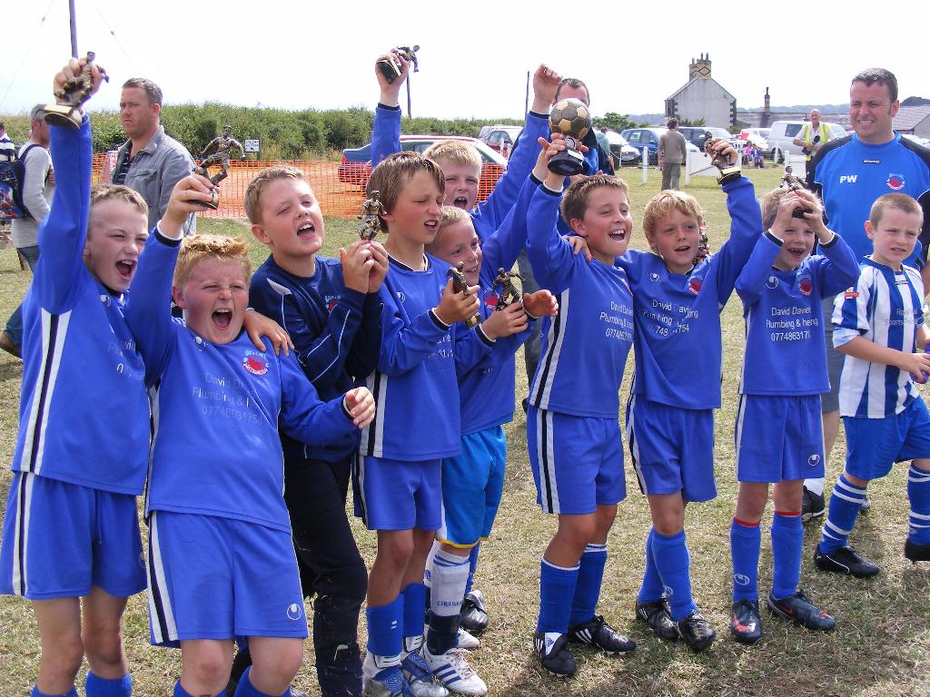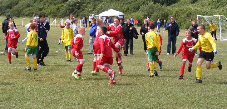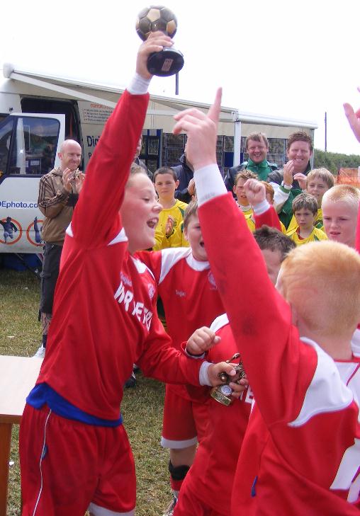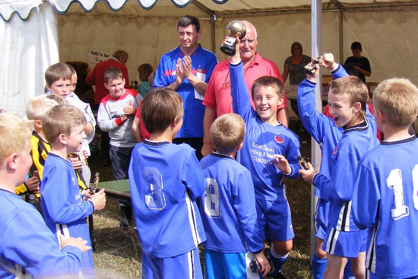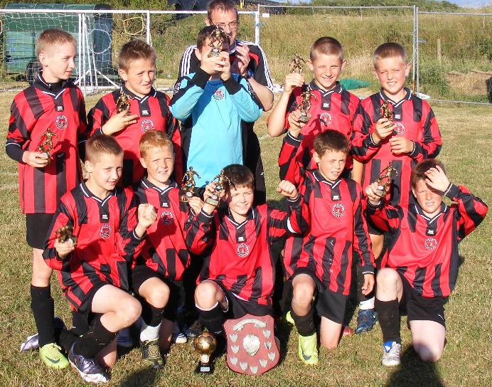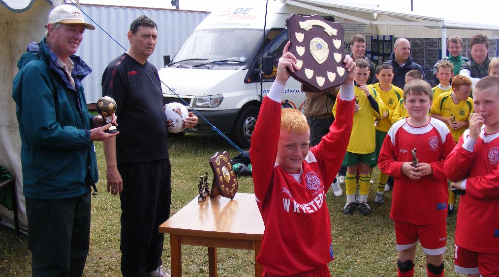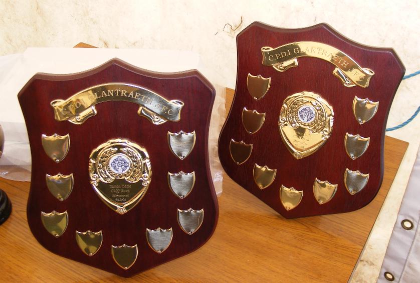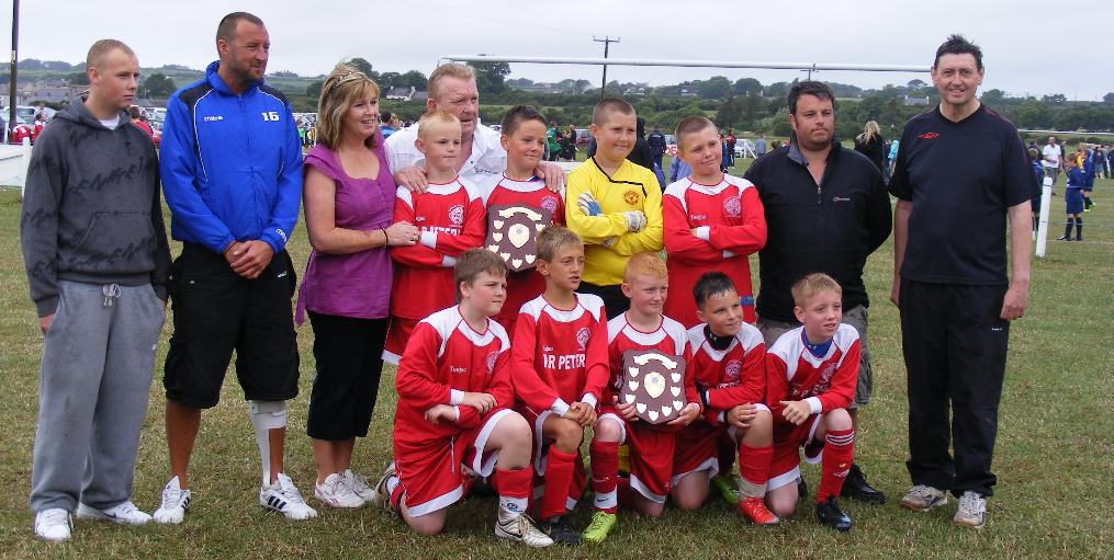 The Dragons are photographed before the Tournament with members of the late Cliff Bach's family and the two memorial shields they kindly donated