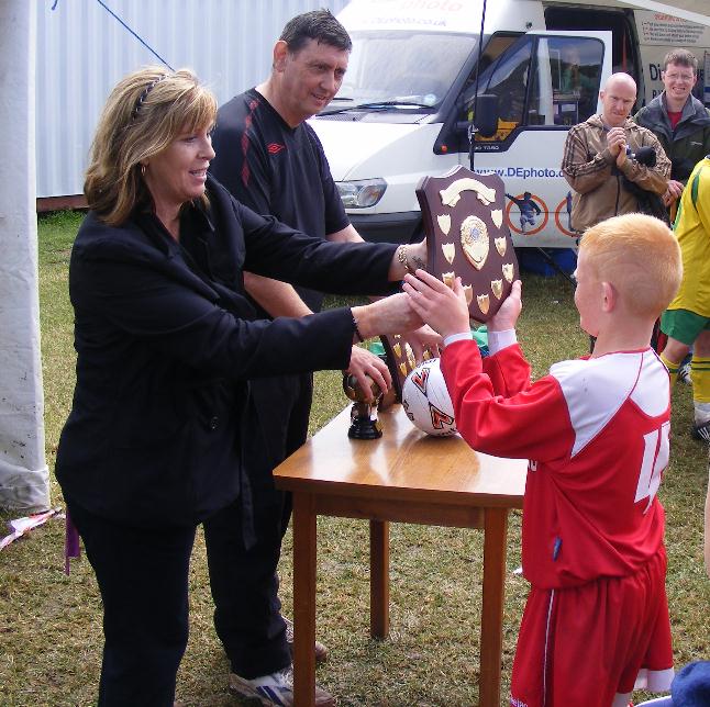 An emotional moment as Cliff Bach's mother Jennifer presents the memorial shield to Jamie