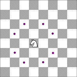 可以從 2 格乘 3 格長方形的一角,走到對角 的一格,跟象棋的「馬行日」差不多。與其他棋子不同的是,馬可以跳過其他棋子(自己或對方的皆可),沒有象棋「跘馬腳」之限制。如圖中所示,馬可以移到有紫色點的方格上。