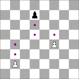 一開始可以向前走一或兩步,但不能越過其他棋子。當兵離開了起步的方格以後,每次只能走一步。圖中用圓點標誌著的便是兵的步法。(兵還有其他特別走法,下面會再介紹。)
