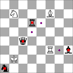 在圖中,白馬可吃黑車,白相可吃黑后,白車可吃黑相,白王可吃黑馬。
