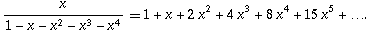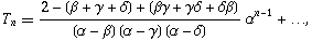 我們有 Tn = 0, 1, 1, 2, 4, 7, 13, 24, 44, 81, 149, .... (OEIS A000073 )