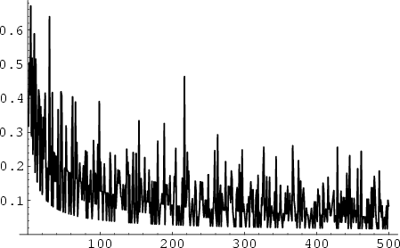 是會有一下跌之趨勢,故相關的素數間隙也不可太大。但這只是猜測而已,我們連這