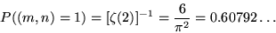 我們任意選取兩整數 m、n ,它們互素的機會率 P((m,n)=1) 為