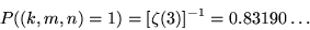 若我們任意選取三整數 k、 m、n ,它們互素的機會率 P((k,m,n)=1)為
