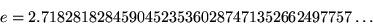 e 是什麼?那是我們稱為自然對數的底 (Base of Natural Logarithm) 的一個數。這 e 是一無理數,即其為一不盡且不循環的小數。