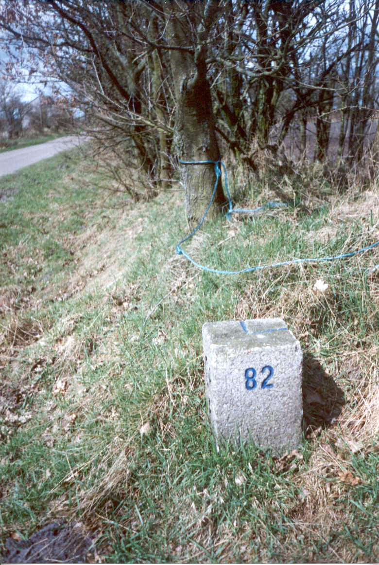 Boundary marker 82. Standing on German territory, the picture is showing a
