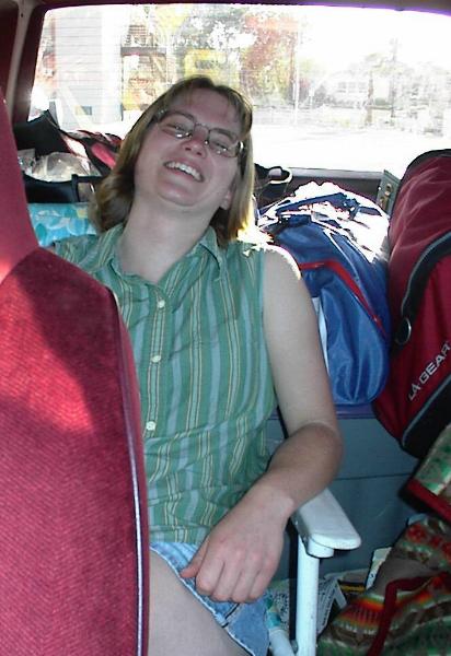 Amy traveling comfortably in her lawn chair