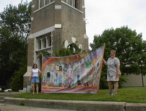 Day One (1 of 6)Jane & Amy in front of the old tower at Patchwork Central just before they hit the road