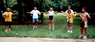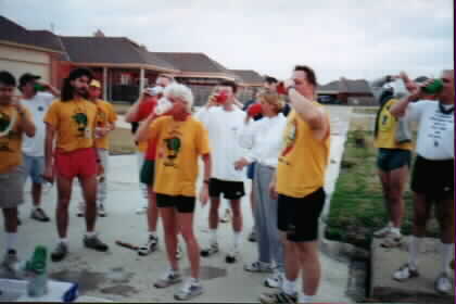 Here's a photo of the hashers at our Alabama Inter Hash doing some excerises Hashing style.