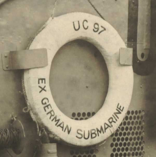 After WWI ended in 1918, the much maligned Treaty of Versailles required Germany to all but totally disarm. As part of the agreement, Germany would not be allowed a submarine fleet. In 1919, brought here by the US Navy as war booty, the UC-97 went on a tour of the United States waterways to promote Victory Bonds. Victory Bonds were issued as a means of immediately recuping some of the costs of prosecuting the war. After a succesful tour of Wisconsin and Illinois ports of call, fulfillment of the Treaty required that she be sank within three years. After being hauled out for target practice in 1921, the USS Wilmette sent her to the bottom with her 4 inch guns, about 19 miles off shore from Wilmette, Il. In 1977 she was rediscovered by the US Navy. In 1992 she was viewed by underwater camera, showing her to be well intact and upright on the bottom--her designation UC-97 still clearly visible. Will she ever rise again? Stay tuned. |