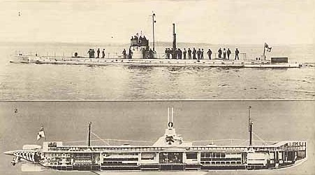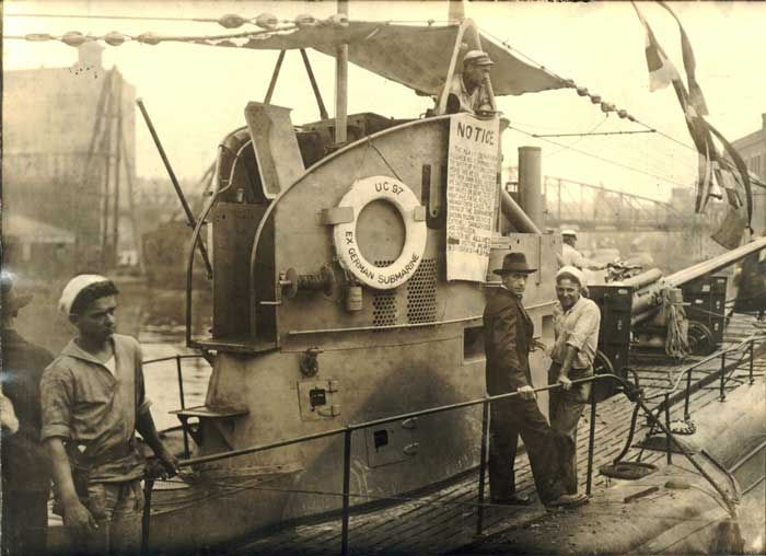 The UC-97 is a UC-90 class, type UCIII, minelaying submarine of 491 tons surfaced and 571 tons submerged. 184 1/4 foot long, 18 3/4 foot beam, with a 12 1/2 foot draft. She went 11.5 knots on the surface and 6.6 knots submerged. She was designed to clandestinely mine the harbors of her enemies. She brought 3 20" torpedo tubes to bear and 6 mine laying tubes. She had a crew of 32 officers and men. |