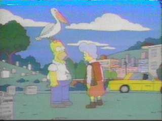 Homer with a Pelican on his Head!