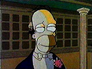 Homer looking at something in a posh suit!