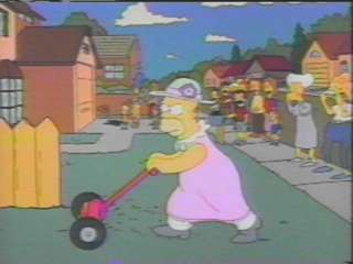 Homer mowing the lawn!