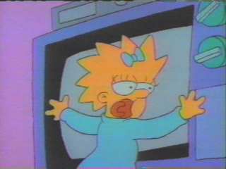 Maggie about to hit Homer with a Hammer!