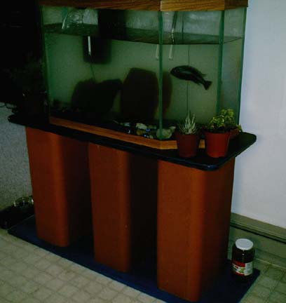 This is a memorial picture of David. He is an African Cichlid who was with me the longest. David passed away on July 15, 2005. He was over 8 years old and a little over 6 inches long. We miss his enthusiastic "pay attention to me and feed me" dance. |