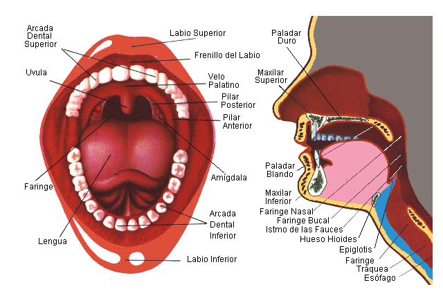 Desde la boca hasta el ano, el tubo digestivo mide unos once metros de longitud. En la boca ya empieza propiamente la digestión. Los dientes trituran los alimentos y las secreciones de las glándulas salivales los humedecen e inician su descomposición química. Luego, el bolo alimenticio cruza la faringe, sigue por el esófago y llega al estomago, una bolsa muscular de litro y medio de capacidad, cuya mucosa secreta el potente jugo gástrico, en el estomago, el alimento es agitado hasta convertirse en una papilla llamada quimo.