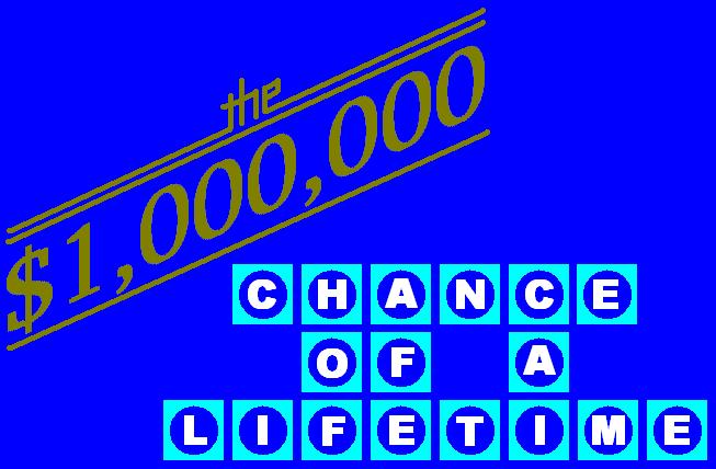 | HOW TO PLAY: Before Millionaire, there was this game in which 2 couples competed for a chance to become millionaires. One member of each couple played each round. A series of blank spaces were shown and letters popped up, one at a time. The first player to buzz in and identify the word, which was also a clue to the puzzle, earned $25 and the opportunity to select two letters from a giant keyboard with 27 keys, with all 26 letters and a star which represented any punctuation marks. The player selected two of the lit keys. All but one of the lit keys indicated letters which appeared in the puzzle. Only one of the lit keys was a "stinger" which didn't belong in the puzzle and lost the player a chance to solve the puzzle. $25 went into the bank each time the chosen letter appeared in the puzzle. If the player avoided the "stinger", (s)he had a chance to solve the puzzle. Doing so won that couple the bank. Up to six clues were played for each puzzle. Each clue in the second round scored $50 and each letter in that puzzle added $50 to the bank. For the third round, each clue and letter was worth $100 a pop. The couple with the most dough played the bonus game. The winning couple stood in a soundproof booth and were given a choice from 3 categories, each of which had six words to name in one minute. The letters in each word popped up, one at a time. Nailing all six words in one minute won the round, otherwise the couple was retired from the show. If they successful, they could either take $5,000 and retire, or come back on the next show. Winning a second bonus game offered them a choice between another $10,000 or another match. Winning a third bonus game won that couple, you guessed it, ONE MILLION SIMOLEONS!!!!! Nine couples accomplished that feat during the show's year-and-a-half run. OTHER TIDBITS: Original announcer Mark Summers was NOT the same Marc Summers who hosted Double Dare, Couch Potatoes, History IQ, and WinTuition. At first, the grand prize of $1,000,000 was all cash, paid as $40,000/year for the next quarter of a century. As of September '86, it became $900,000 cash, several rooms of furniture, 20 roundtrip airline tickets, and two new Mazdas. |