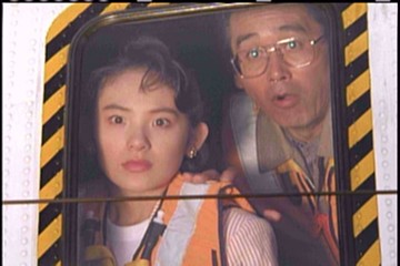 This shot is from Godzilla vs King Ghidorah and features Miki with Professor Mazaki, the dinosaur expert. While his part was effectively over in the first third of the movie he still inexplicably hung around for the rest of the movie for seemingly no other reason than to exchange dialogue with Miki. Here he and Miki look appropriately surprised when -in a burst of harp music- Godzilla makes his first appearance in the movie.