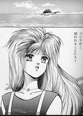 Here's one last shot of Godzilla, Miki, and Miki's big hair.