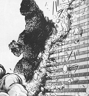 With Miki out of the way [Didn't you know that psychic girls are the mortal enemies of giant monsters? Where have you been?] Godzilla is free to stomp on Osaka.