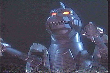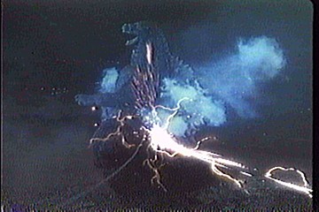After being goaded by male members of G-Force, Miki locks in on Godzilla's secondary brain and fires off the explosive in the G-Crusher. With the section of his brain that controls his movement destroyed, Godzilla goes limp and slumps to the ground.