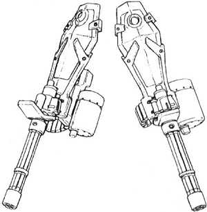 | drum & belt fed, attached to shield | battery-powered, stored in shield | |||||||||||||||||
