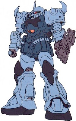 | MS-07B3 Gouf Custom Unit type: mass production ground combat mobile suit Maufacturer: Zeonic Company Operator(s): Duchy of Zeon Rollout: UC ? First deployed: UC 0079 Production run: ? units Head height: 18.2 meters Overall height: 18.7 meters Base weight: 58.5 metric tons Full weight: 77.6 metric tons Power generator output: 1034 kilowatts Rocket thrusters: 40,700 kilograms total Maximum thruster acceleration: 0.53 Gees Sensor radius: 3600 meters Frame type: monocoque Armor materials: luna-titanium alloy Equipment and features: flare launcher 35mm gatling cannon magazine x 2 (optional) Basic armament: heat rod x 1 Mounted or attached armament: 3-barrel 35mm gatling cannon x 1 shield x 1 - 75mm gatling cannon x 1 - heat sword x 1 |