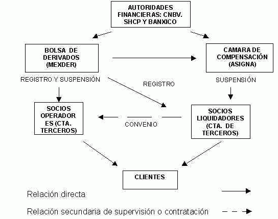 MexDer: Sociedad anónima denominada MexDer, Mercado Mexicano de Derivados, S.A. de C.V., que tiene por objeto proveer las instalaciones y demás servicios para que se coticen y negocien los contratos de futuros y contratos de opciones.