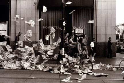 - One American Reality, Newspapers on the street. San Francisco in the day of LA Rodney King Riot.