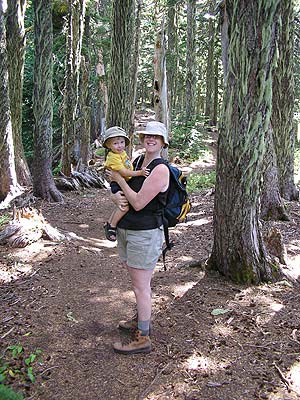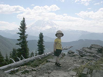 Here is Mom and Dayne hiking up to Summit Lake on Mt. Rainer. |