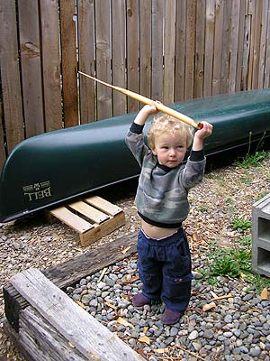 Dayne with his new paddle that daddy made. Show us how you