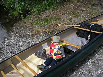 Here is Dayne all bundled up for his first canoe ride. We were off in an instant and he loved it. |