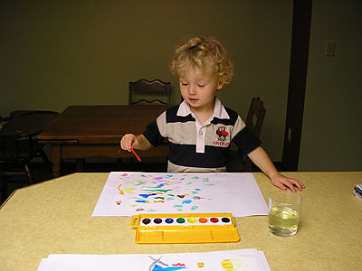 Dayne is getting into painting with water colors. |