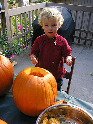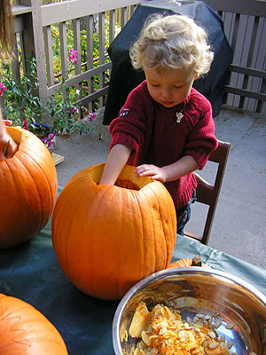 Dayne's first pumpkin carving. |