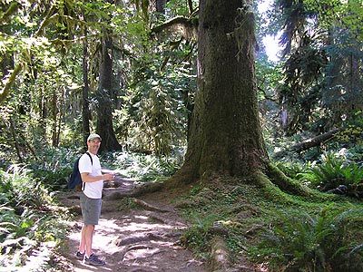 the wilderness to find big trees. Here's Rich with a nice old spruce. |