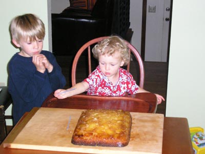 Here he is with the neighbor kid helping with the candles