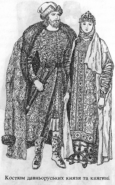 | Image 1: Prince and Princess. Note that both are wearing the Novgorod shuba overcoat - his as a cloak toss over his shoulders, hers with her arms through the elbow slits. | |||||||||||||||