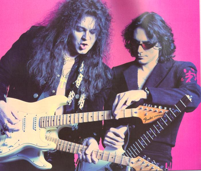Los virtuosísimos Ynqwie y S. Vai, muy entretenidos con sus guitarras...