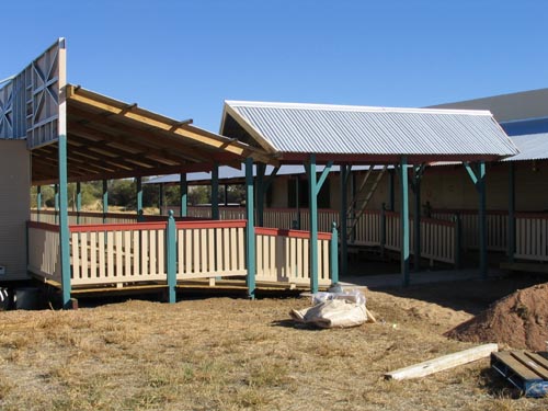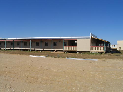 The complex, located at 18 Stork Road, Longreach, is in easy walking distance to the town center, the Quantas Museum, School of distance Education and Stockman's hall of fame. The complex comprises 27 donga style units, serviced daily, with share bathroom facilities: nineteen one bedrooms;eight two bedrooms. Camping sites available. Tea/coffee making facilities, queens size beds, airconditioning. Continental breakfast available, barbeque, laundry with ironing facilities. Pets by arrangement. Buses and school groups welcome. Tarif single $28; double/twin $50. All major credit cards, Eftpos.