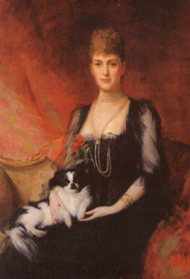 | Alexandra of Denmark (December 1 1844 - November 20 1925) was queen consort of King Edward VII of the United Kingdom 1901-1910. Prior to that, she was Princess of Wales from 1863 to 1901 -- the longest any woman has ever held that title. In many ways, Alexandra, or "Alix" as she was known within the family, may be seen as a precursor of Diana, Princess of Wales. She was born on December 1, 1844, at the Amalienborg Palace, Copenhagen, to Prince Christian, later King Christian IX of Denmark. Although of royal blood, her family lived a comparatively normal life and though they did not possess great wealth, they nevertheless made spectacular marriages. Her sister Princess Dagmar, for instance, would become Maria Feodorovna, wife of Czar Alexander III of Russia and mother of Nicholas II. England's Albert Edward, Prince of Wales, known as "Bertie", had already given his parents, Queen Victoria and her husband, considerable cause for concern, and his mother, now widowed, was anxious for him to settle down. Alexandra of Denmark was not her first choice, since the Danes were at loggerheads with the Prussians, and most of the British royal family's relations were German. However, on meeting the queen, Alix met with her approval as well as Bertie's, and the couple were married on March 10, 1863. Alix's style was very different from that of the senior British royals. She was devoted to her children and her servants and enjoyed activities such as dancing and ice skating. Even after the birth of her first child, Prince Albert Victor ("Eddy") in 1864, she continued to behave much as before, and this led to some friction between the queen and the young couple. After the birth of her third child in 1867, however, complications threatened her life and she was left with a permanent limp as a result. She also suffered an increasing degree of deafness, which was hereditary. Self-conscious about a scar on her neck (allegedly the result of a childhood accident), she tried to hide it by wearing high choker necklaces and dresses. A strikingly attractive woman (whom some have described as a nineteenth century equivalent of Diana, Princess of Wales), Alix's high necklines started a fashion craze, though few at the time knew the secret behind them. It was Bertie and Alix who adopted Sandringham House as their preferred residence, and their marriage was in many ways a happy one. However, Bertie did not give his wife or children as much attention as she would have liked, and they grew gradually estranged, until his serious illness in the early 1870s brought about a reconciliation. Their relationship, over the years, was an up-and-down affair, as Bertie, even after winning back his wife's affections, continued to keep mistresses, one of the most notorious being the actress Lillie Langtry. The death of Prince Albert Victor in 1892 was a serious blow to the tender-hearted Alix, and she insisted on keeping his room and possessions exactly as he had left them. She herself remained startlingly youthful looking into her senior years, thanks to elaborate veils and sensationally heavy makeup (an observer described her as looking enamelled). As Queen from 1901 to 1910, and Queen Mother thereafter, Alix was greatly loved by the British people. She was associated with many charities, the most notable being Alexandra Rose Day. During the Boer War, she founded Queen Alexandra's Nursing Corps, which became known as the "Q.A.s". However, she lacked political acumen, and her hatred for the Germans became very apparent during World War I. She died on November 20, 1925, at Sandringham, and was buried at Windsor. |
