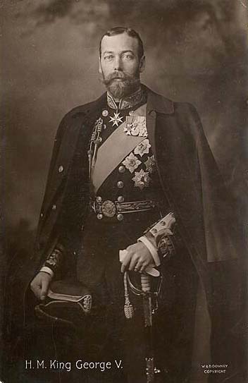 | George V was born June 3, 1865, the second son of Edward VII and Alexandra. His early education was somewhat insignificant as compared to that of the heir apparent, his older brother Albert. George chose the career of professional naval officer and served competently until Albert died in 1892, upon which George assumed the role of the heir apparent. He married Mary of Teck (affectionately called May) in 1893, who bore him four sons and one daughter. He died the year after his silver jubilee after a series of debilitating attacks of bronchitis, on January 20, 1936. George ascended the throne in the midst of a constitutional crisis: the budget controversy of 1910. Tories in the House of Lords were at odds with Liberals in the Commons pushing for social reforms. When George agreed to create enough Liberal peerages to pass the measure the Lords capitulated and gave up the power of absolute veto, resolving the problem officially with passage of the Parliament Bill in 1911. The first World War broke out in 1914, during which George and May made several visits to the front; on one such visit, George's horse rolled on top of him, breaking his pelvis - George remained in pain for the rest of his life from the injury. The worldwide depression of 1929-1931 deeply affected England, prompting the king to persuade the heads of the three political parties (Labour, Conservative and Liberal) to unite into a coalition government. By the end of the 1920's, George and the Windsors were but one of few royal families who retained their status in Europe. The relationship between England and the rest of the Empire underwent several changes. An independent Irish Parliament was established in 1918 after the Sinn Fein uprising in 1916, and the Government of Ireland Act (1920) divided Ireland along religious lines. Canada, Australia, New Zealand and South Africa demanded the right of self-governance after the war, resulting in the creation of the British Commonwealth of Nations by the Statute of Westminster in 1931. India was accorded some degree of self-determination with the Government of India Act in 1935. The nature of the monarchy evolved through the influence of George. In contrast to his grandmother and father - Victoria's ambition to exert political influence in the tradition of Elizabeth I and Edward VII's aspirations to manipulate the destiny of nations - George's royal perspective was considerably more humble. He strove to embody those qualities, which the nation saw as their greatest strengths: diligence, dignity and duty. The monarchy transformed from an institution of constitutional legality to the bulwark of traditional values and customs (particularly those concerning the family). Robert Lacey describes George as such: ". . . as his official biographer felt compelled to admit, King George V was distinguished 'by no exercise of social gifts, by no personal magnetism, by no intellectual powers. He was neither a wit nor a brilliant raconteur, neither well-read nor well-educated, and he made no great contribution to enlightened social converse. He lacked intellectual curiosity and only late in life acquired some measure of artistic taste.' He was, in other words, exactly like most of his subjects. He discovered a new job for modern kings and queens to do - representation." |
