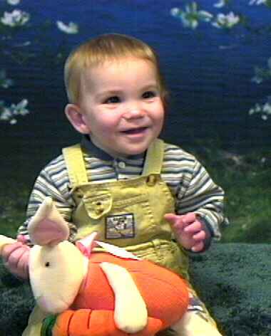 We succeeded beyond our expectations in trying to get Drew to smile.