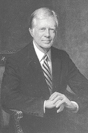 Jimmy Carter aspiró a hacer un gobierno "competente y compasivo", en respuesta a la gente americana y sus expectativas. Sus logros eran notables, pero en una era de aumento en los costos energéticos, la inflación montante, y continuas tensiones, era imposible para su administración alcanzar estas expectativas tan altas. Carter, quién raramente ha utilizado su nombre completo -- James Earl Carter, Jr. -- nació el 1 de octubre de 1924, en Plains, Georgia. El cosechar mani, hablar de política, y la devoción a la fé Bautista eran el apoyo principal de su educación. Para su graduación en 1946 de la Academia Naval en Annapolis, Maryland, Carter se casó con Rosalynn Smith. Los Carter tienen tres hijos, John William (Jack), James Earl III (chip), Donnel Jeffrey (Jeff), y una hija, Amy Lynn. Después de siete años de servicio como oficial naval, Carter volvió a Plains. En 1962 entro en la política del estatal, y ocho años más tarde lo eligieron gobernador de Georgia. Entre los nuevos jóvenes gobernadores del sur, él atrajo la atención enfatizando la ecología, la eficacia en el gobierno, y el retiro de barreras raciales. Carter anunció su candidatura para Presidente en diciembre de 1974 y comenzó una campaña de dos años la cual ganó ímpetu gradualmente. En la convención Demócrata, lo nominaron en la primera papeleta. Eligió al senador Walter F. Mondale de Minnesota como su compañero de campaña. Carter tuvo una campaña fuerte contra el Presidente Gerald R. Ford, debatiendo con él tres veces. Carter ganó por 297 votos a 241 votos contra Ford.