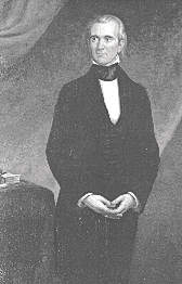 Referido a menudo como el Presidente del " caballo oscuro ", James K. Polk era el último del Jacksonianos en sentarse en la casa blanca, y el último presidente fuerte hasta la guerra civil. Nació en el condado de Mecklenburg, Carolina del Norte, en 1795. Estudioso y bueno para las industria, Polk se graduó con honores en 1818 de la Universidad de Carolina del Norte. Siendo un joven abogado, él se incorporó en la política, sirviendo en la legislatura de Tennessee, y se hizo amigo de Andrew Jackson. En la cámara de representantes, Polk era el principal teniente de Jackson en la Guerra de la Banca. Él sirvió como portavoz entre 1835 y 1839, retirándose para convertirse en gobernador de Tennessee. Hasta que las circunstancias levantaron las ambiciones de Polk, él era un competidor principal para el nombramiento democrático para Vicepresidente en 1844. Ambos Martin Van Buren, que se esperaba que ganara el nombramiento democrático para el presidente, y Henry Clay, que debía ser el candidato del whig, intentaron tomar el tema expansionista de la campaña declarándose asi mismos opuestos a la anexión de Texas. Polk, sin embargo, acertó públicamente que Texas debía ser re-anexado y todo Oregon recuperado.