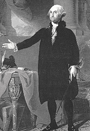 El 30 de Abril de 1789, George Washington, estando parado en el balcón del Salón Federal en Wall Street, Nueva York, tomó su juramento de oficina como el primer presidente de los Estados Unidos." Como lo primero de todo, nuestra situación servirá para establecer un precedente, " él le escribió a James Madison, " es devotamente deseado de mi parte, que estos precedentes pueden ser fijados en principios verdaderos". Nacido en 1732 dentro de una familia de sembradores de Virginia, él aprendió la moral, las costumbres, y los requisitos de conocimiento de un caballero de Virginia para el siglo 18. Él persiguió dos intereses entrelazados: las artes militares y la expansión hacia el occidente. A los 16 años, él ayudó en la mensura de las tierras de Shenandoah para el Lord Fairfax Thomas. Se comisionó como teniente coronel del Ejercito en el 1754 y peleó en las primeras reyertas de lo que más tarde se conoció como la guerra indio-francesa. El siguiente año, como ayudante del Gen. Edward Braddock, él escapó ileso, cuatro balas rasgaron su capa y dos caballos fueron muertos bajo él. Desde 1759 hasta al estallido de la revolución americana, Washington veló por sus tierras alrededor del Monte Vernon y sirvió en la Casa de Burgueses de Virginia. Casado con una viuda, Martha Dandridge Custis, él se dedicó devotamente a una vida ocupada y feliz.