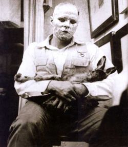 Joseph Beuys con su famosa obra de arte: la liebre muerta