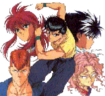 facing Karasu, Hiei defeating Bui, Kuwabara "defeated"